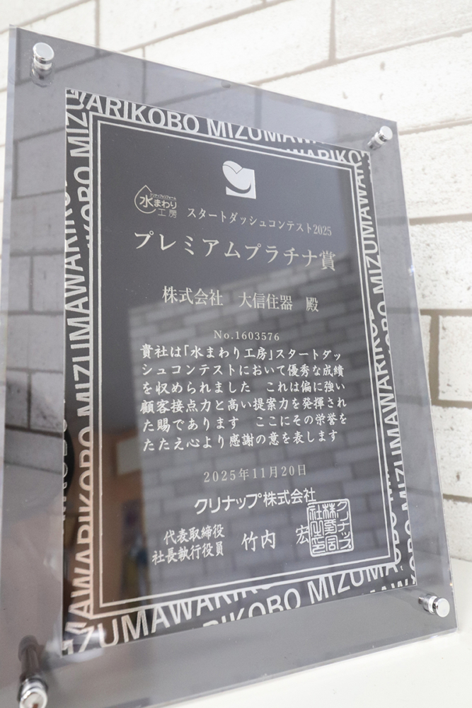 クリナップ「スタートダッシュコンテスト2025」プレミアムプラチナ賞受賞