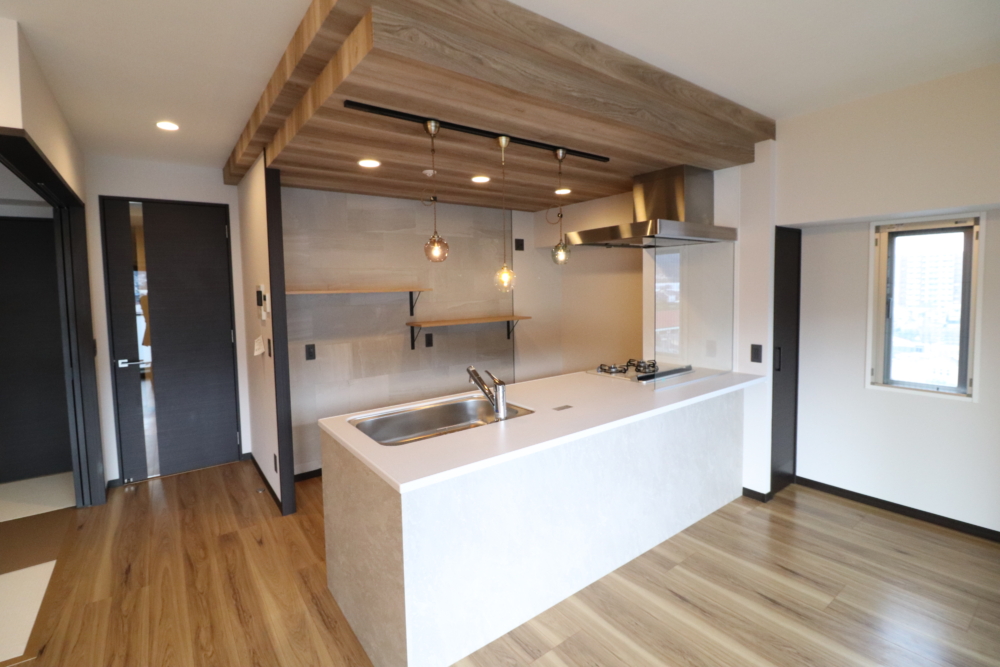 キッチンが白で少しあどけないと考えられていた様子から・・・