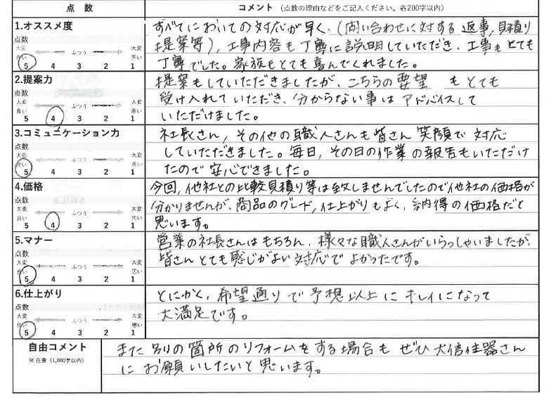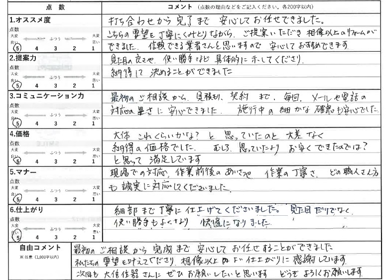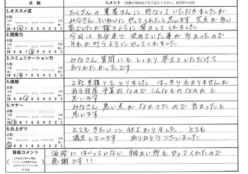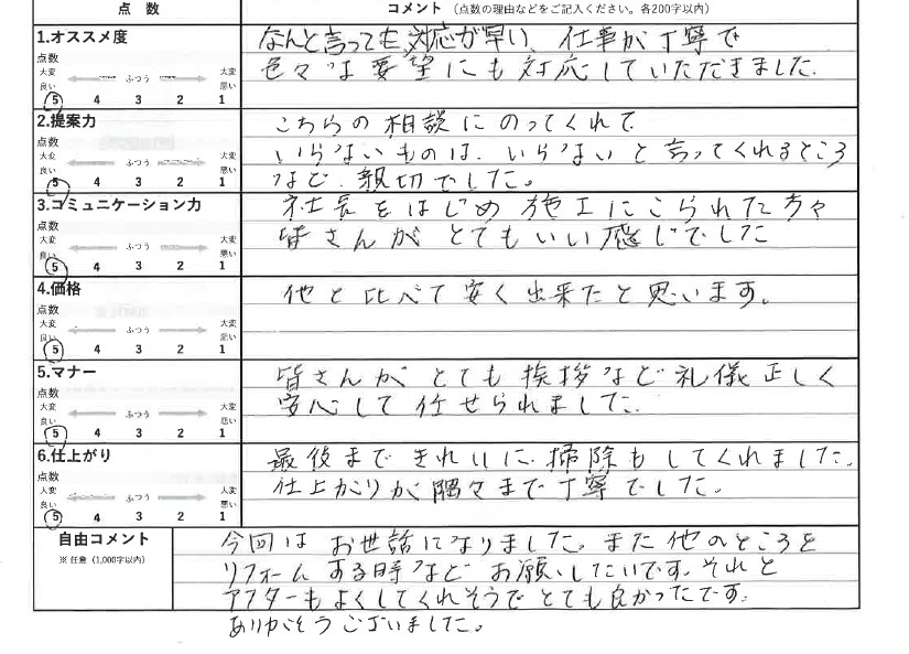 まずはリフォーム及び切実な口コミを記載いただきましたお客様に心より御礼申し上げます。