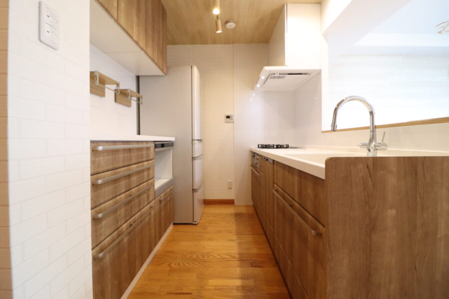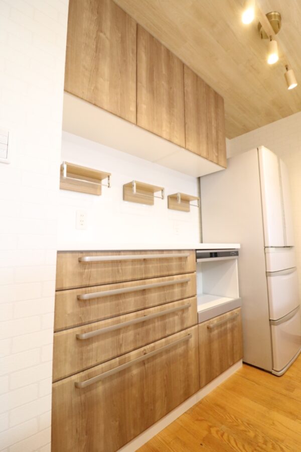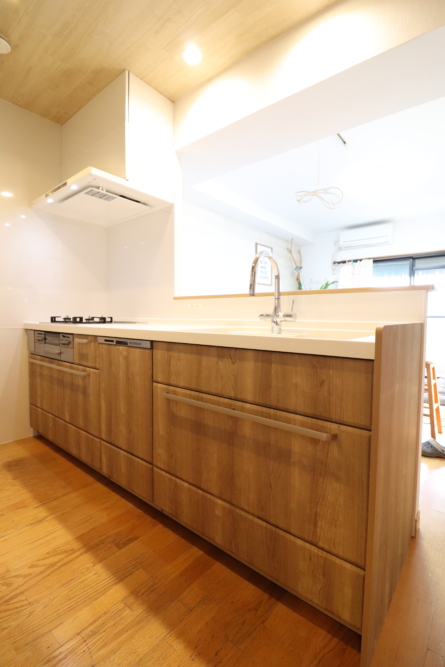 木目柄メープル色がとっても素敵なリビングキッチン空間に生まれ変わりました。