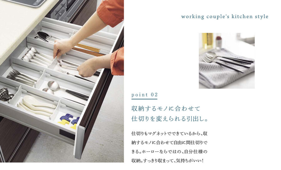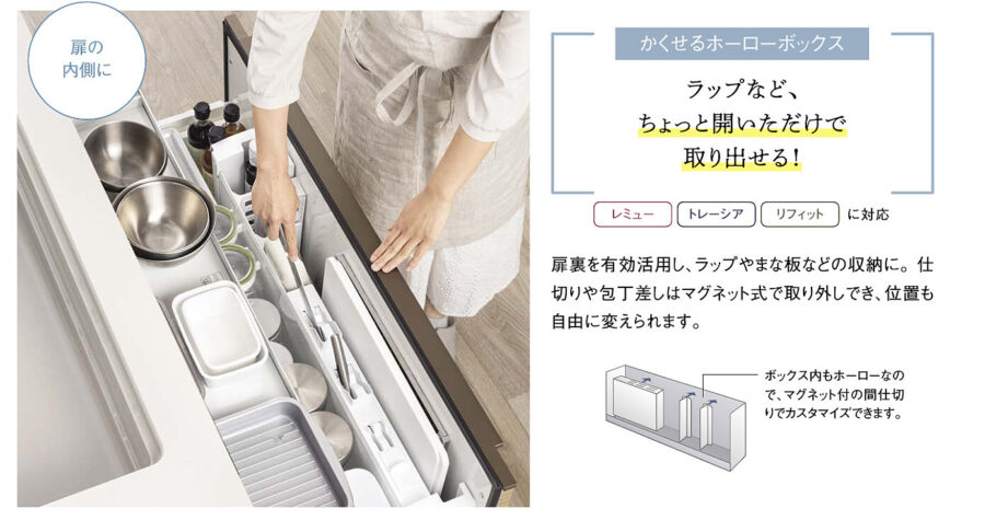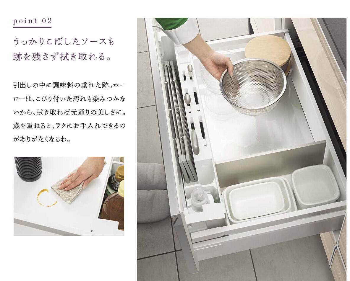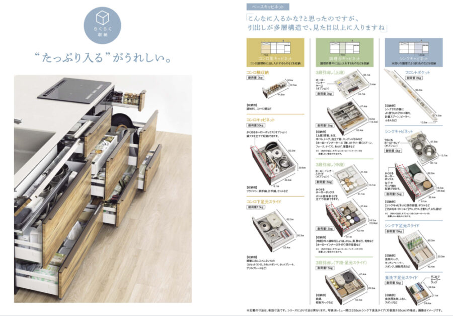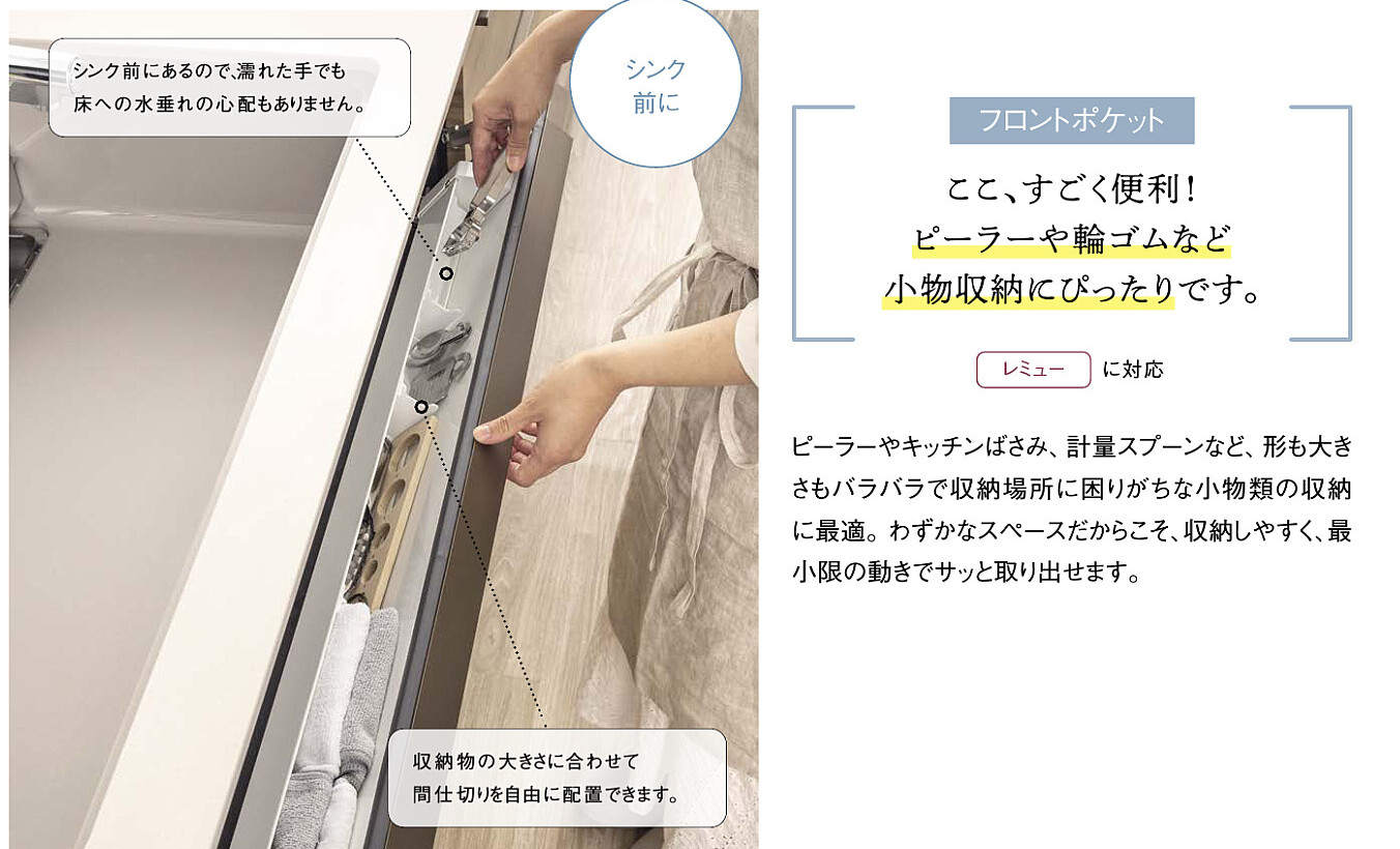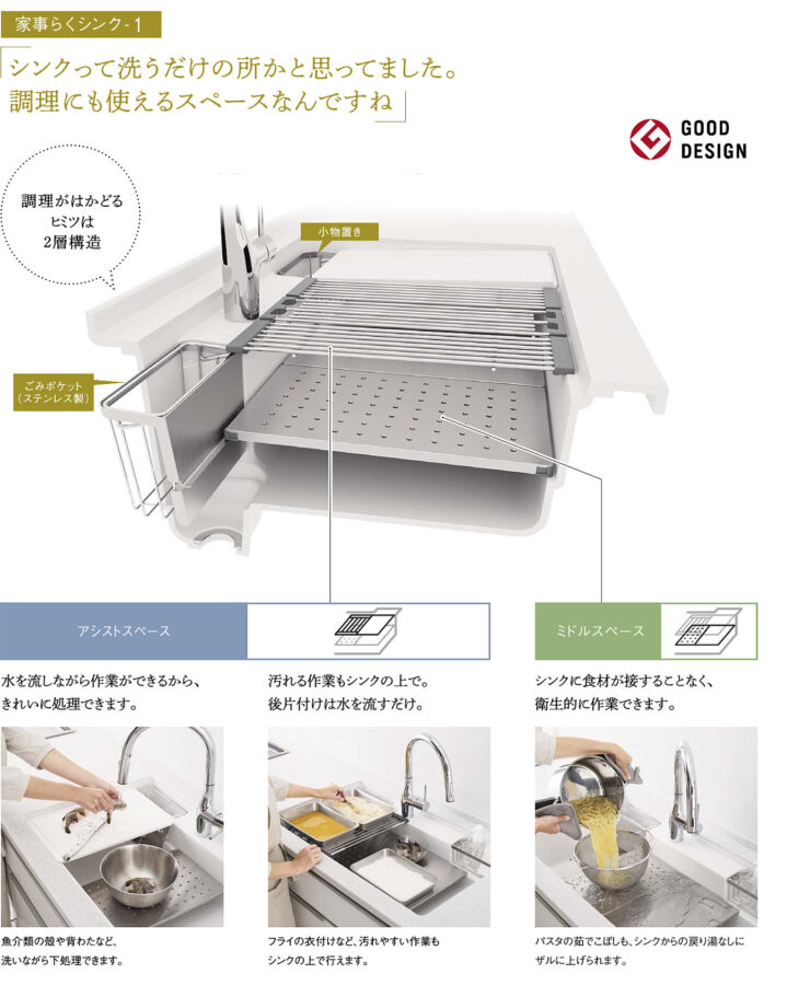 シンクの下に直接置かずミドルスペースに置けて汚れにくく料理するアシストスペースで