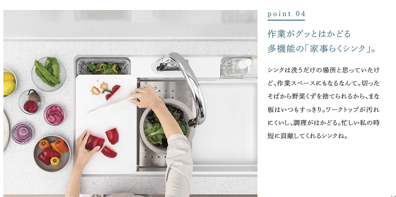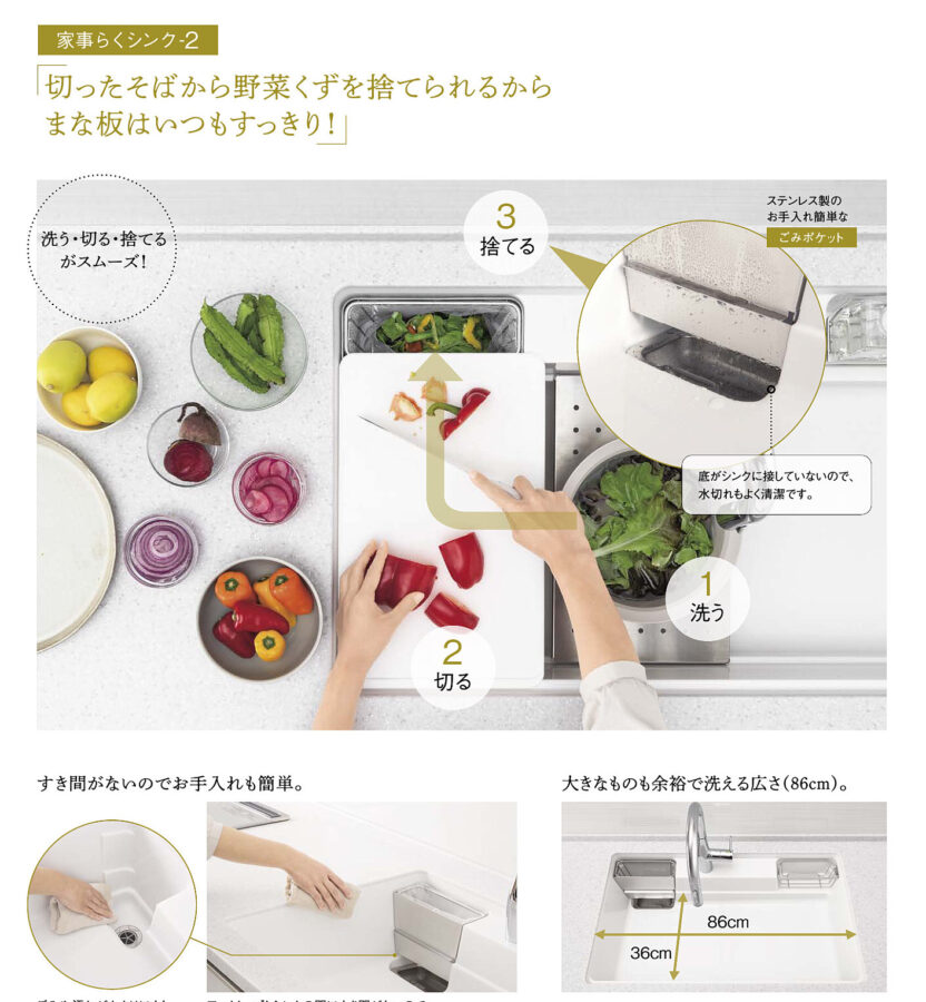 は名前の通り料理がとってもしやすくなる構造のシンクです。