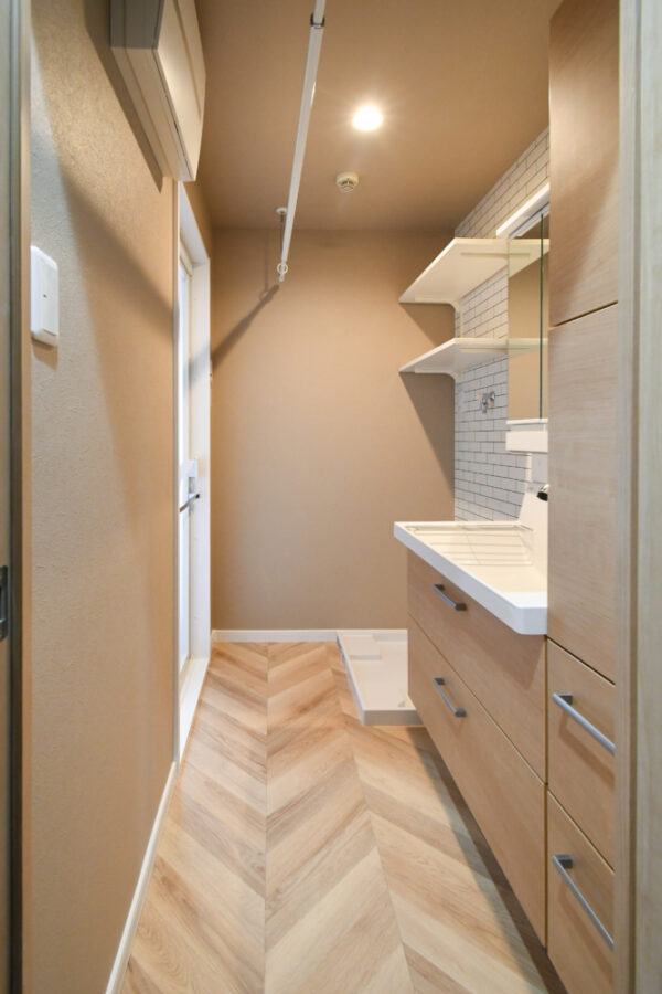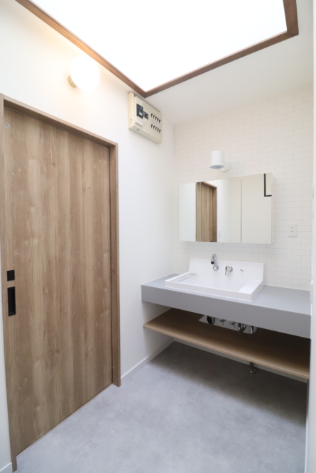 こちら事例はドアや洗面台はリクシルのカスタムバニティとラシッサDです。