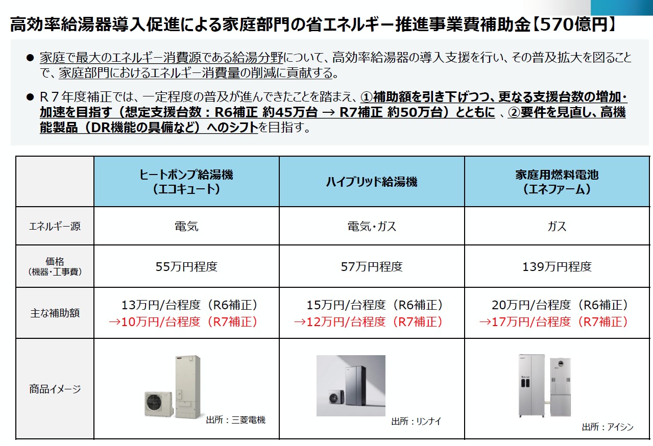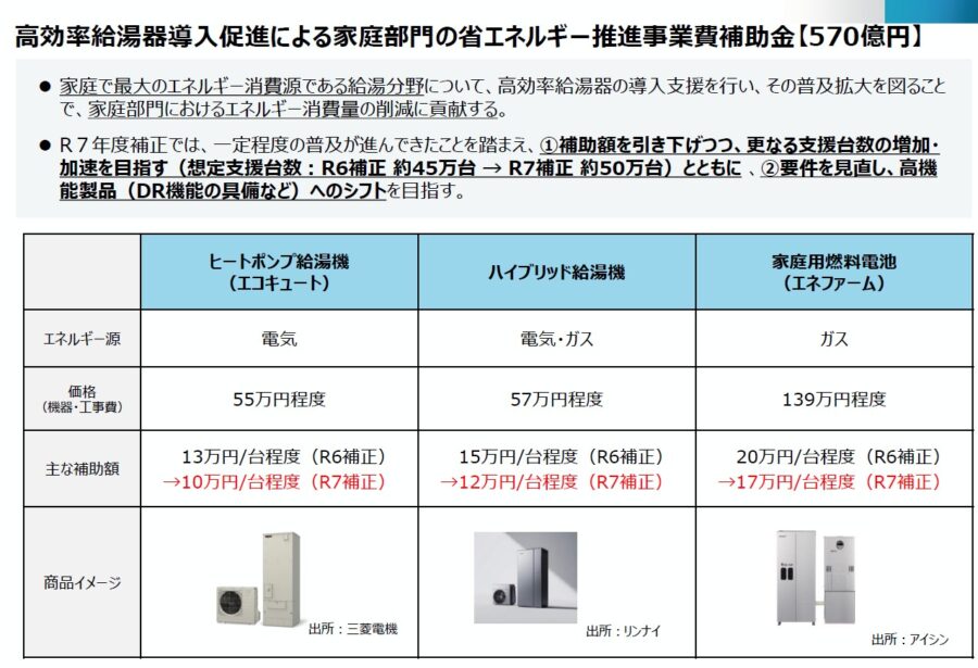 エコキュート・ハイブリッド給湯機・エネファームを純粋に取替するだけで申請可能なシンプル補助金!