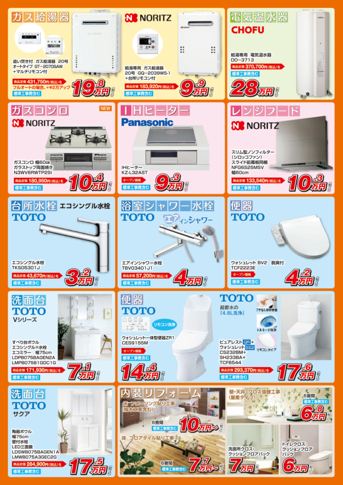 コンロ(ガス・電気)、レンジフード・換気扇・水栓