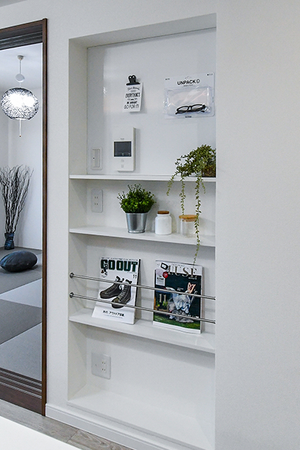 料理に使ういろいろな物を置けて魅せるニッチです。