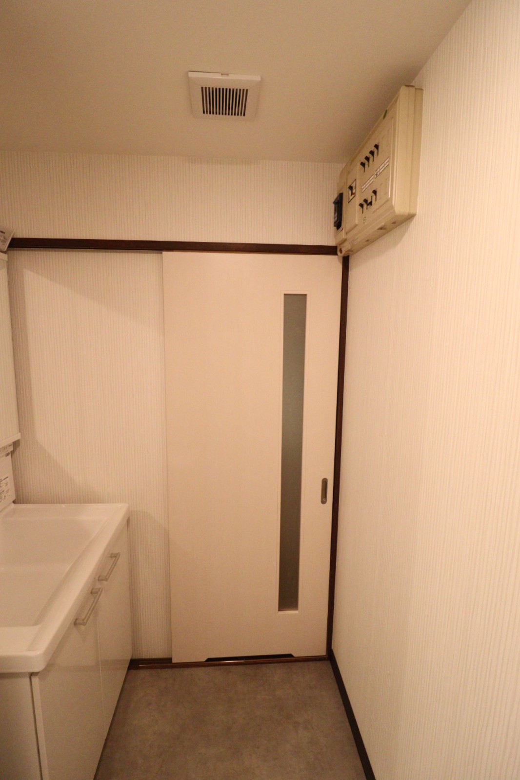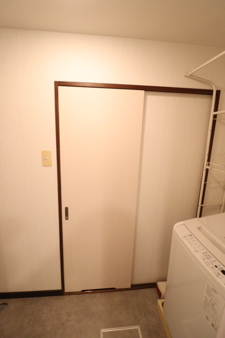 洗面所入り口ドアも造作建具新調
