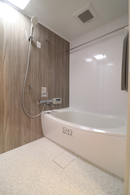 新しく落ち着きある木目バスルーム