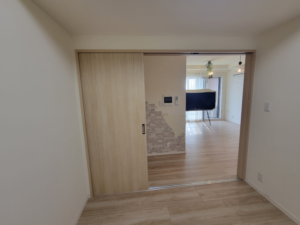 今回はカップボード面壁や洋室入口ドアなど壁を撤去します。