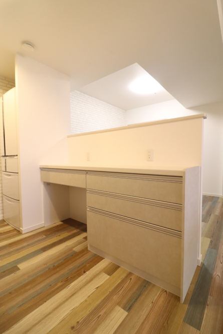 キッチンとカップボード間が少し広く使いづらいことや奥にある洋室も上手く使えていないという悩みがありました。