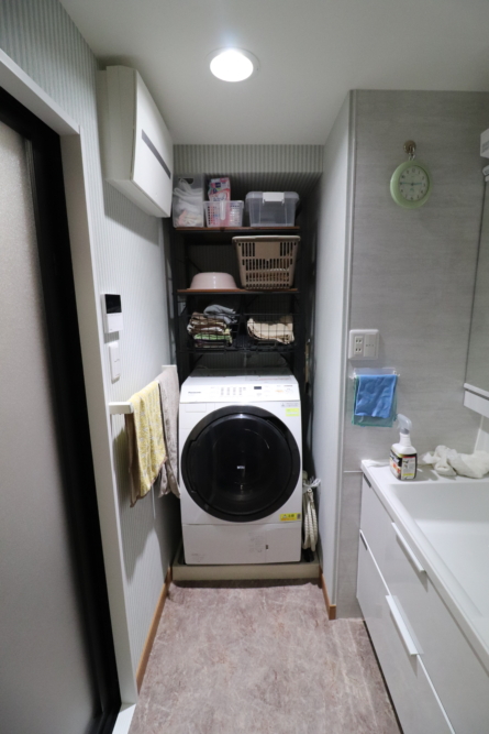 少し前に変えられたガス式暖房乾燥機は再利用して洗面所クロスは張替3日間のリフォームとなりました。