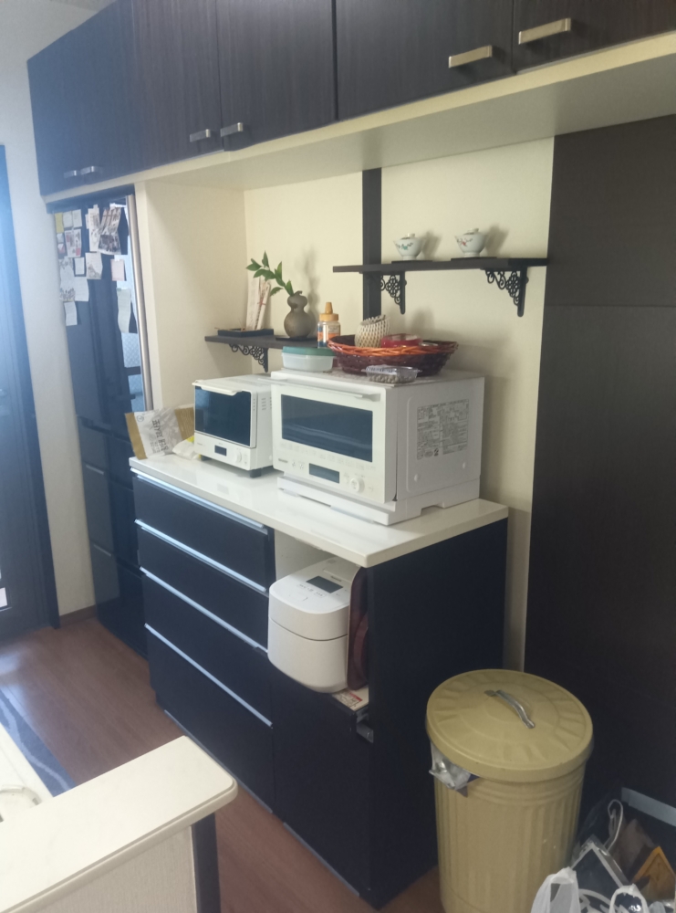 カップボードはクリナップのステディアでハイカウンターにすることで4段引き出しでたっぷり収納出来るように変わりました。