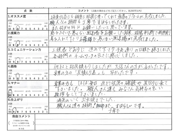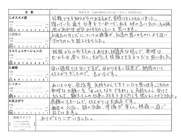 工事中も営業の方がいつも来てくれて安心でき、細い意思疎通もスムーズでした。 [続きを読む]