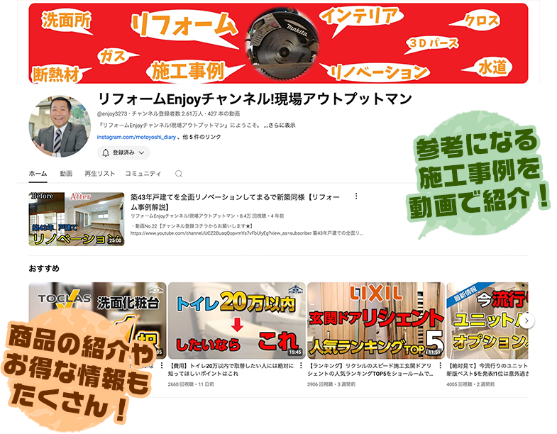 「リフォームEnjoyチャンネル!現場アウトプットマン」はこちら!